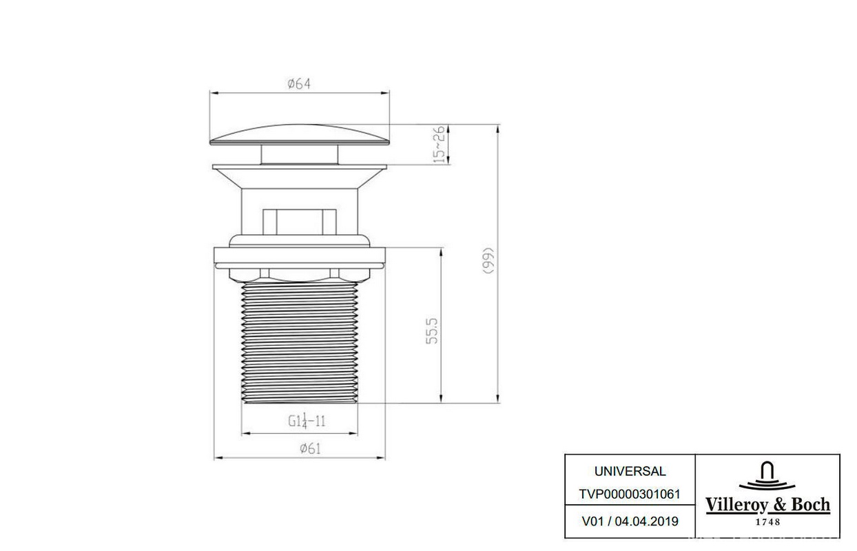 Сифон Villeroy & Boch Универсал Слив для раковины Push-open (цв.хром), V&B ZZ