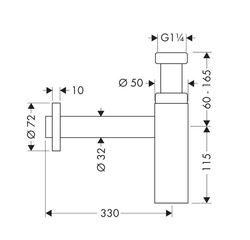 Сифон Hansgrohe Универсал Сифон для раковины, 1 1/4, горизонтальная часть 330мм, (металл цв.матовый белый), Flowstar S ZZ