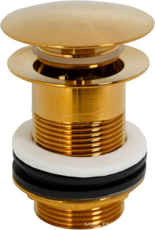 Сифон Cezares Eco Донный клапан для сливного отверстия раковин без перелива, нажимной Clic-Clac, G 1 1/4, (металл, цв.брашированное золото), Eco ZZ
