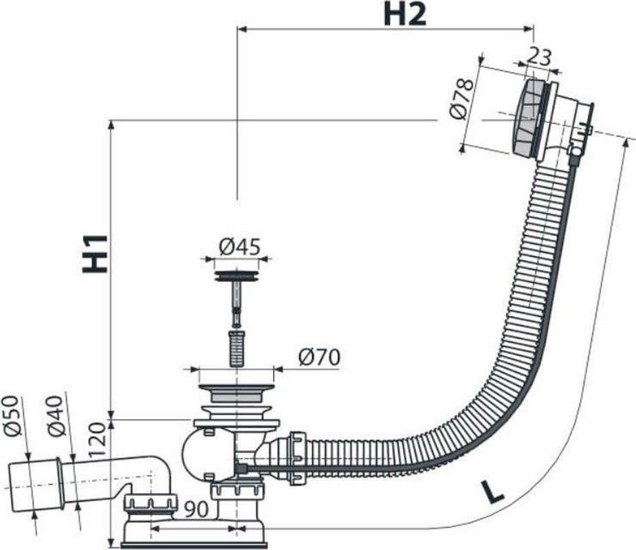 Сифон AlcaPlast Универсал Сифон для ванны А55 К полуавтомат комплект, металл 100 см, хром, ZZ