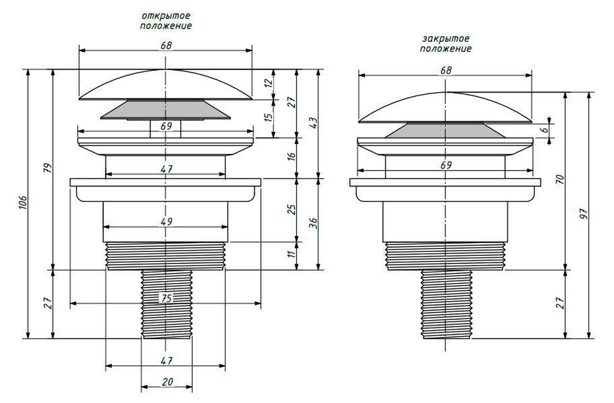 Сифон Salini Универсал Донный клапан для ванны, "Click-Clack", (крышка слива литой камень S-Sense цв.белый матовый), Salini ZZ