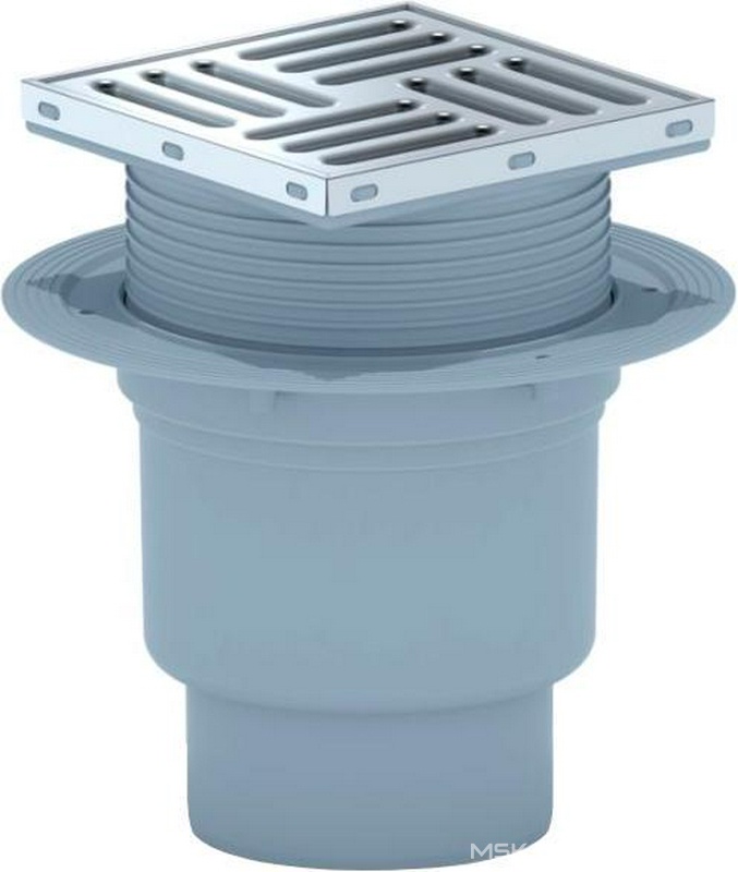 Сифон Ани Пласт Комплектующие Трап для душа вертикальный, регулируемый, с сухим затвором, с решёткой из нержавеющей стали 150*150 мм, выход d-110 мм ZZ