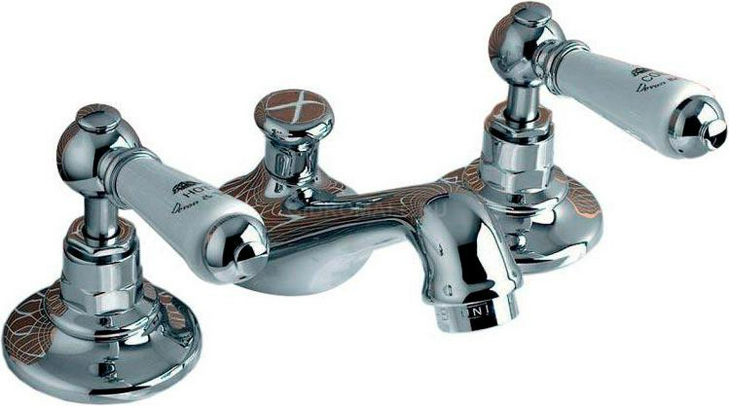 Смесители для биде Devon & Devon Dandy Смеситель для биде на 3 отв. c д/к, (цв.хром, ручки цв.белый), Dandy KL