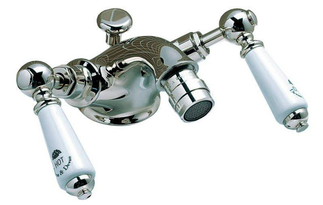 Смесители для биде Devon & Devon Dandy Смеситель для биде на 1 отв., c д/к, (цв.хром, ручки цв.белый), Dandy ZZ