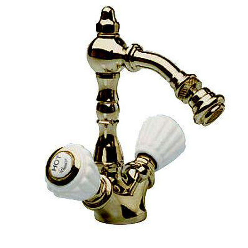 Смеситель для биде на 1 отв. с д/к (цв.бронза/ручки керамич.белые), Nicolazzi ZZ