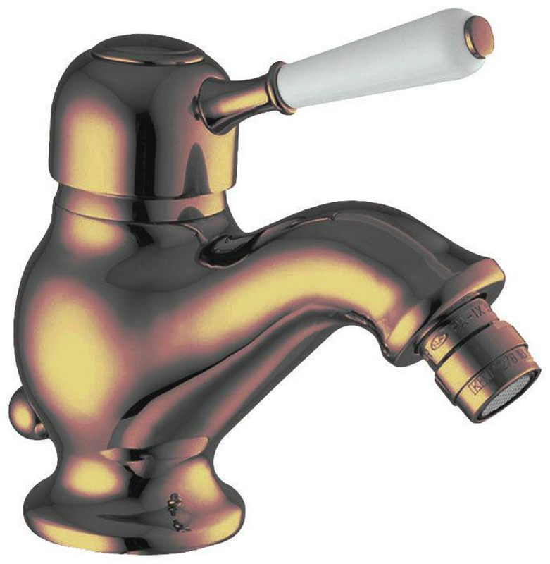 Смеситель для биде, (рычаг сбоку), с д/к, (цв. бронза, ручка цв. белый), Canterbury ZZ