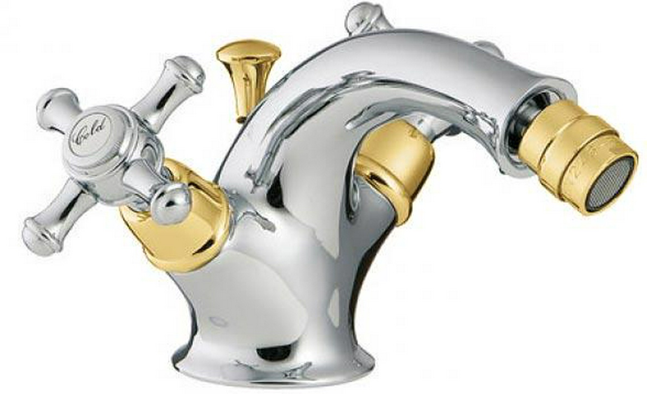 Смесители для биде 3M Old italy Cмеситель для биде, с д/к, (цв.хром/золото), (2 ручки с белыми пластиковыми вставками SO - Sogno), Old italy ZZ