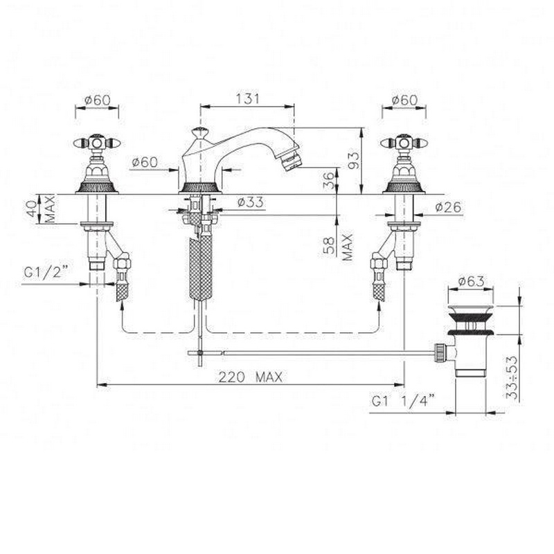 Смеситель для биде, на 3 отв., с д/к, (цв.гальван.золото, ручки 36), ZZ Nicolazzi Impero 1215 GB 36