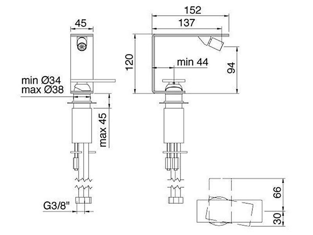 Смесители для биде 3M 5mm Смеситель для биде, 1 ручк., (цв. тертая сталь), 5mm ZZ