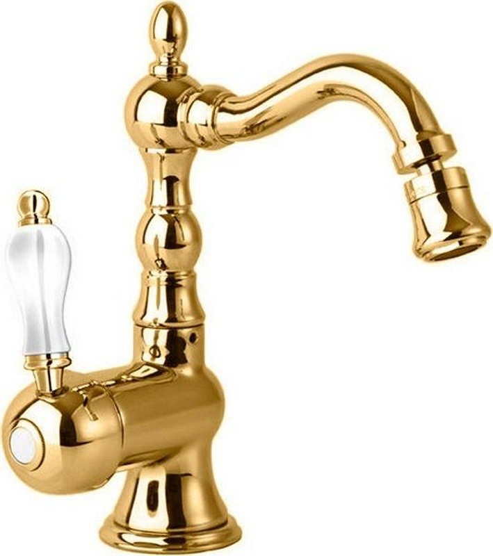 Смеситель для биде, с поворотным изливом, с д/к, (цв.золото, ручка цв.белая), ZZ Cezares Venezia VENEZIA-BSM2-03/24-Bi
