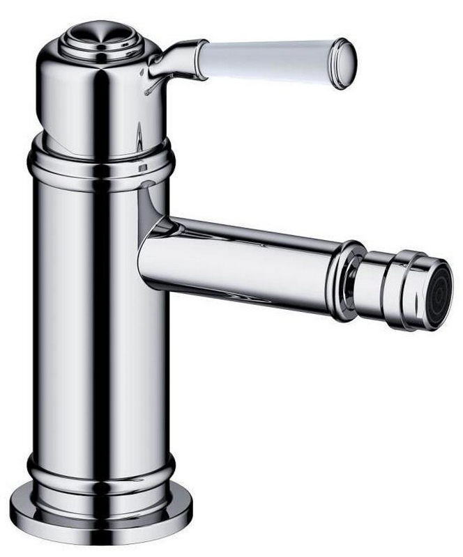 Смеситель для биде, высокий с поворотным изливом, с д/к, (цв.хром, ручка цв.белый), Margot ZZ