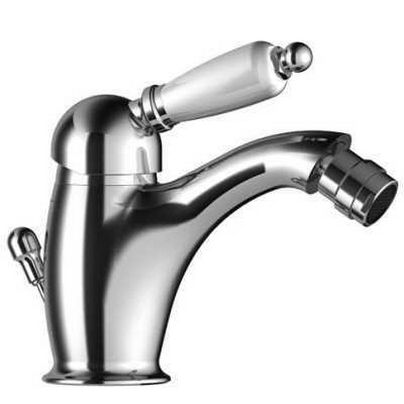 Смеситель для биде, высокий с поворотным изливом, с д/к, (цв.хром, ручка цв.белый), Margot ZZ