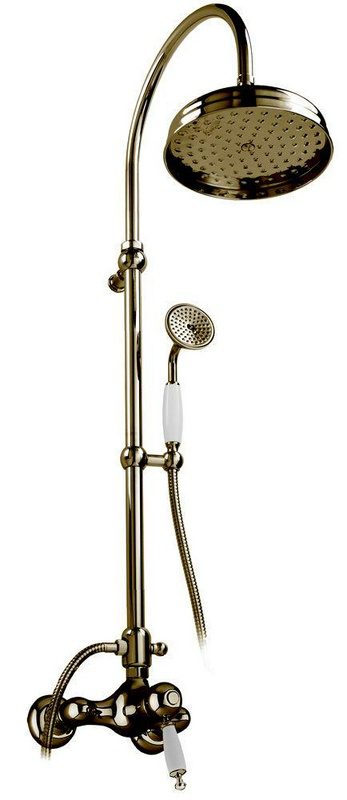 Смеситель для душа Gaia Canterbury Смеситель для душа, со стационарным верхним душем 30см, лейка, шланг, кронштейн в компл., (цв. бронза, ручка цв. белый), Canterbury ZZ