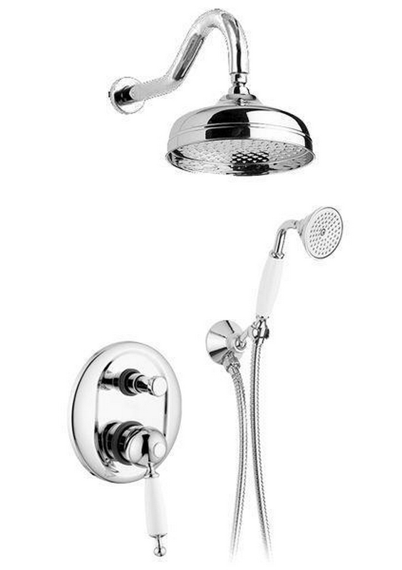 Смеситель для душа Gaia Canterbury Смеситель для душа, встаив. в стену с переключ., c верхн.стацион. душем 20см, лейка, шланг, кронштейн в компл., (цв. хром,ручка цв/белый),Canterbur ZZ