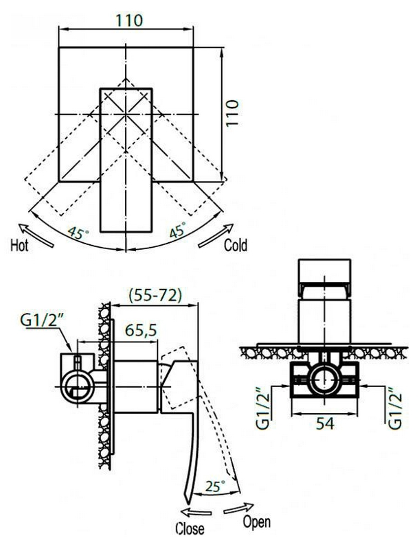 Смеситель для душа Cezares Quattro Смеситель для душа, встраиваемый в стену, (цв. хром), Quattro ZZ