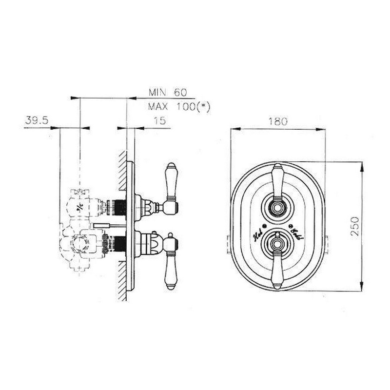 Смеситель для душа Nicolazzi Teide Наружная часть встр.в стену термостата д/душа 3/4, с запорным вентилем, (БЕЗ встраив.части арт.4910), (цв. хром, ручка металл), Teide ZZ