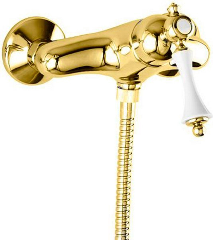 Смеситель для душа, встраиваемый в стену, (цв.золото, ручка цв.белый), Elite ZZ