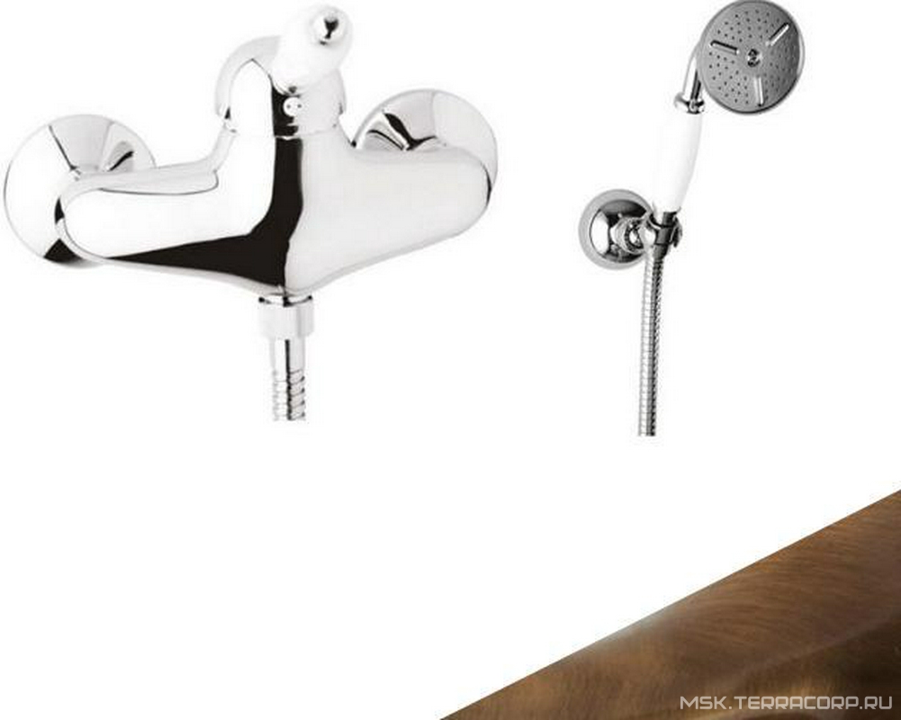 Смеситель для душа Cezares Elite Смеситель для душа, лейка, шланг, кронштейн в компл., (цв.бронза, ручка цв.белый), Elite ZZ