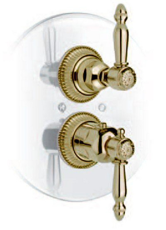Смеситель для душа Nicolazzi Impero Наружная часть встр.в стену термостата д/душа 3/4, с запорным вентилем, (БЕЗ встраив.части арт.4910), (цв.гальван.золото, ручки 36L), Impero ZZ