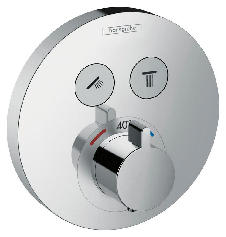 Смеситель для душа Hansgrohe ShowerSelect Термостат Highflow на 2 потребителя, внешняя часть круглая, без скрытой арт.01800180, (цв.хром), HG ShowerSelect ZZ