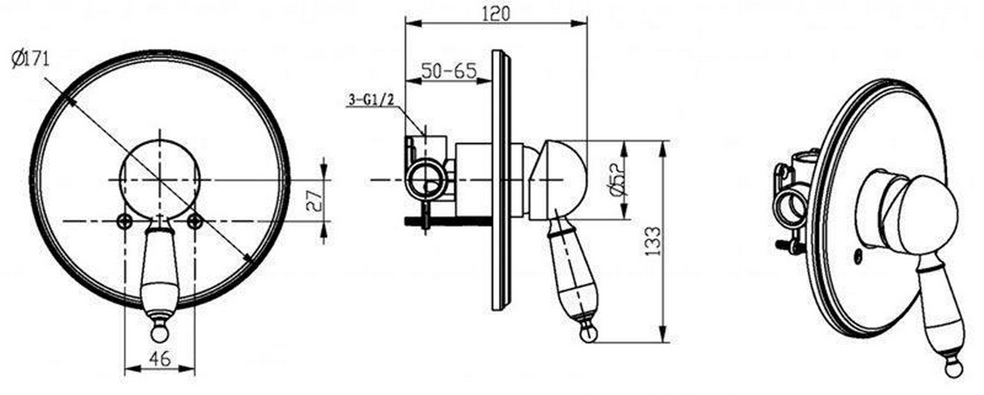 Смеситель для душа Boheme Provance Смеситель д/душа встраиваемый Provanse Ripresa, однорычажный с установочным комплектом, бронза ZZ