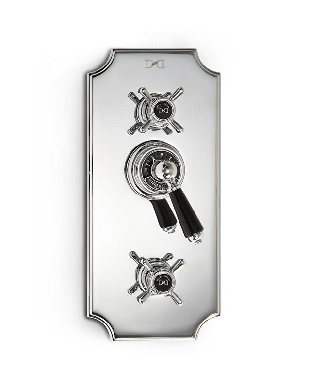 Смеситель для душа Devon & Devon Black Dandy Смеситель термстат, встраиваемый в стену, с переключателем, (цв.хром, ручки цв.хром/чёрн.), Black Dandy ZZ