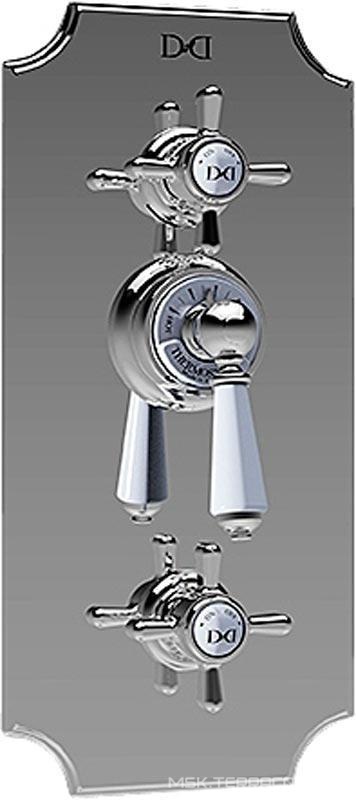 Смеситель для душа Devon & Devon Black Dandy Смеситель термстат, встраиваемый в стену, с переключателем, (цв.хром, ручки цв.хром/бел.), Black Dandy ZZ