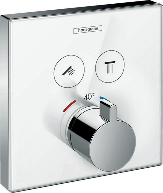 Смеситель для душа Hansgrohe Raindance Select Смеситель-термостат для душа, встр.в стену на 2 потреб, внешняя часть БЕЗ скрытой части арт. 01800180, (стеклян.цв.белый/хром), ShowerSelect Glass ZZ