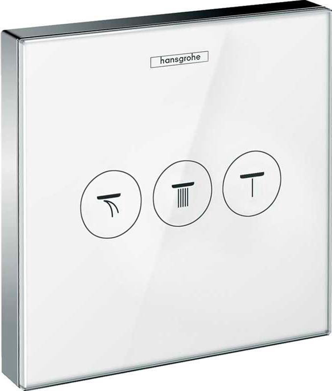 Смеситель для душа Hansgrohe Raindance Select Модуль для душа, встр.в стену на 3 потребителя, внешняя часть БЕЗ скрытой части арт. 01800180, (стеклянный цв.белый/хром), ShowerSelect Glass ZZ