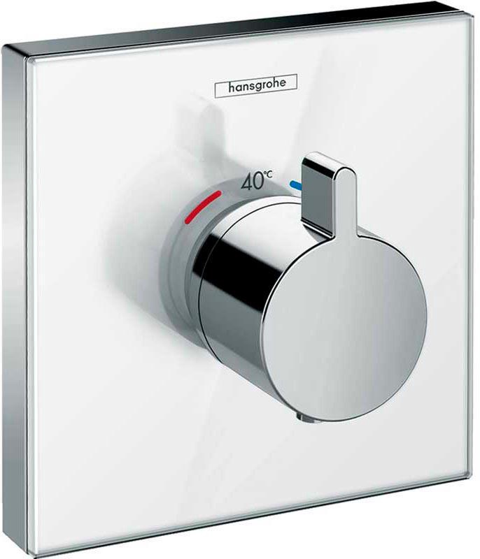 Смеситель для душа Hansgrohe ShowerSelect Термостат встраиваемый в стену, внешняя часть без скрытой арт.01800180, (стеклянный цв. белый/хром), HG ShowerSelect Glass HighFlow ZZ