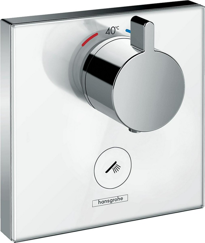 Смеситель для душа Hansgrohe ShowerSelect Термостат встраиваемый в стену, на 2 потреб., внешняя часть без скрытой арт.01800180, (стеклянный цв. белый/хром), HG ShowerSelect Glass HighFlow ZZ