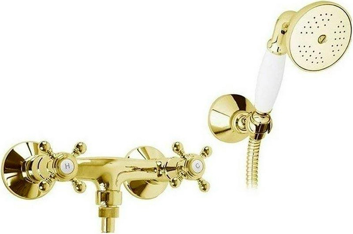 Смеситель для душа, лейка, шланг 150см, кронштейн в компл., (цв.золото, ручки белые), ZZ Cezares Golf GOLF-D-03/24-Bi