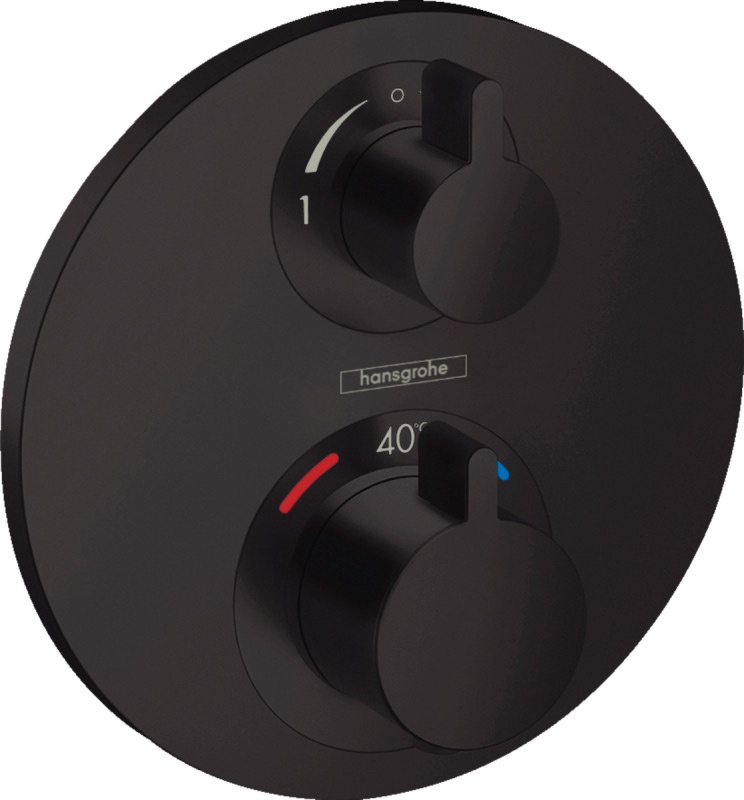 Термостат встраив. в стену для 2 потребителя, запорно-перекл.устройство, наружняя часть, БЕЗ скрытой части арт.01800180,(цв.матов.черный), ZZ Hansgrohe Ecostat S 15758670