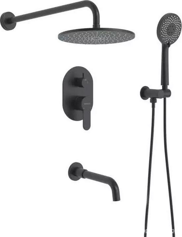 Смеситель для душа Berges VENTAS Смеситель для ванны с душем Ventas 3R, внутренняя часть в компл., верхний, ручной душ, см-ль, излив, цв. черный, ZZ