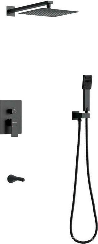 Смеситель для душа встроенный + верхний+ ручной душ (комплект) Uno Shine Gun Metall С ВНУТРЕННЕЙ ЧАСТЬЮ, черный ZZ