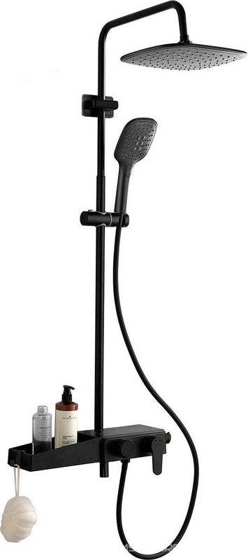Смеситель для душа Azario Azario Душевая система AZARIO, со смесителем для душа, с поворотным изливом, душ лейка, шланг, верхний душ в компл.,цв. черный ZZ