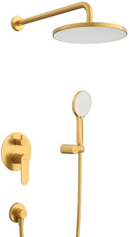 Душевой комплект встраиваемый с внутренней частью, в комплекте : смеситель, излив, верхний/ручной душ, цв. матовое золото