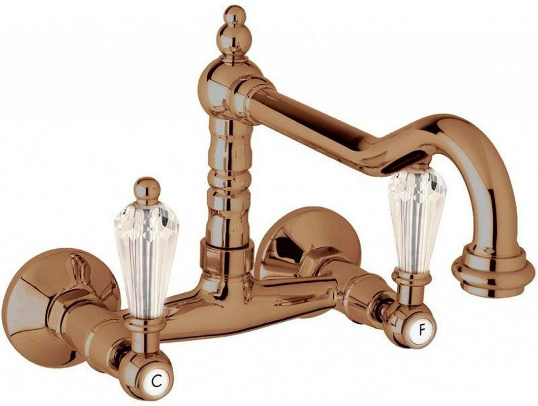 Смеситель для кухни, настенный монтаж с повортным изливом, (цв. бронза, ручки Swarovski), ZZ Cezares Diamond DIAMOND-LLP-02-Sw