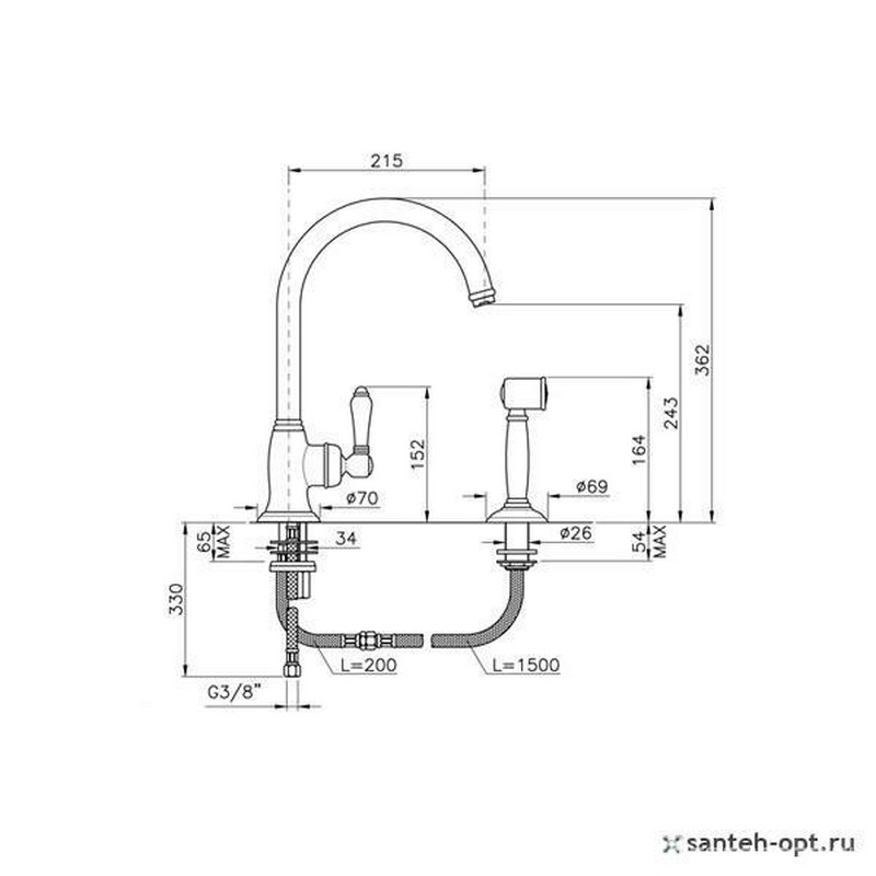 Смеситель для кухни Nicolazzi El Capitan Смеситель для кухни, однорычажный с поворот. изливом и выдвиж. душем, (цв.Ottone Grezzo латунь матов., ручка El Capitain), Nicolazzi ZZ