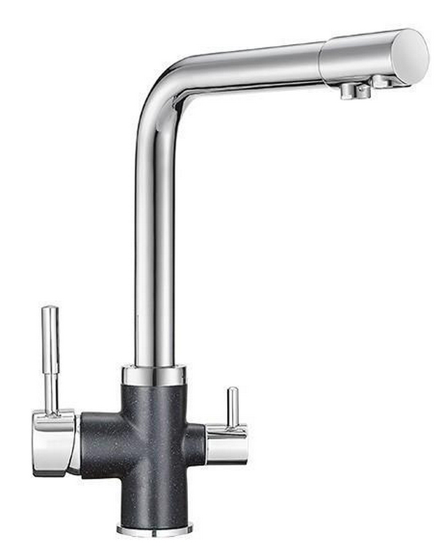 Смеситель для кухни, с подключением к фильтру с питьевой водой, цв.корпуса хром, излив черный ZZ