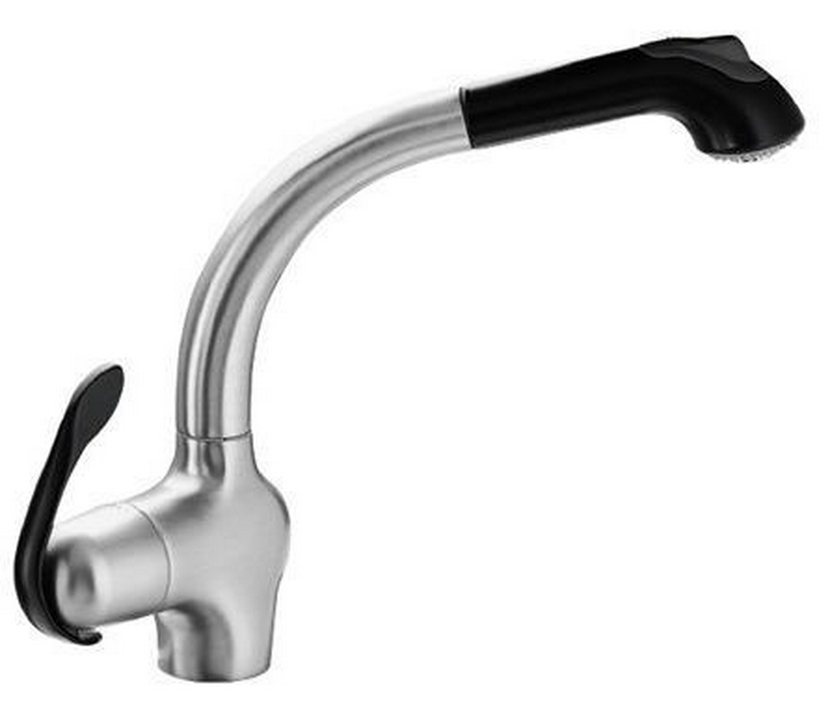 Смеситель для кухни Like с гибким изливом, цв.хром/черный излив, ZZ