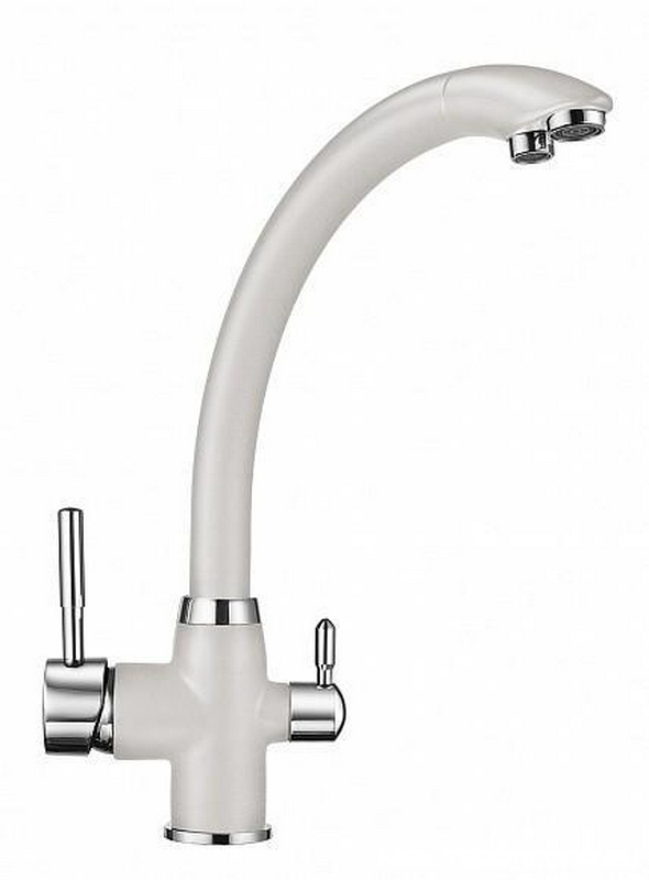 Смеситель для кухни, гибкий излив, с подключением к фильтру, цв.белый/хром Смеситель для кухни, гибкий излив, с подключением к фильтру, цв.белый/хром