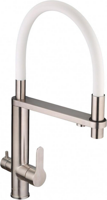 Смеситель для кухонной мойки, с каналом для подключения фильтра, с гибким изливом, (цв. нерж.сталь/белый), ZZ Swedbe Selene Plus 8441