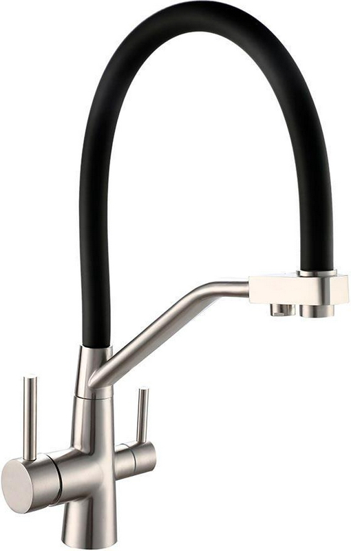 Смеситель для кухни ESKO ESKO Смеситель для кухни, гибкий излив, цв. нерж.сталь/черный