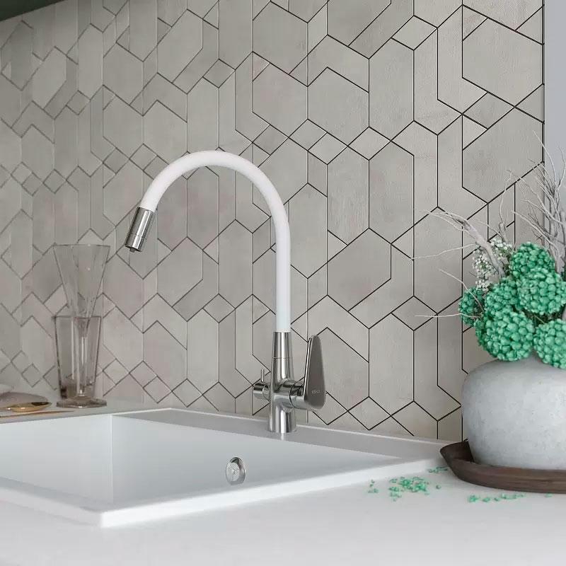 Смеситель для кухни ESKO ESKO Смеситель для кухни, гибкий излив, с подключением к фильтру, цв.белый/хром