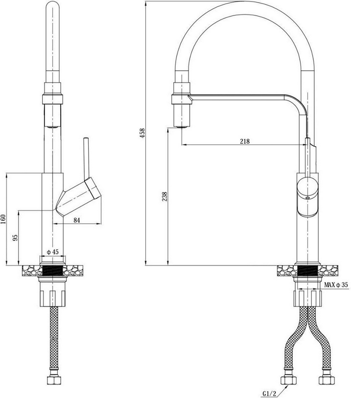 Смеситель для кухни ESKO ESKO Смеситель для кухни, гибкий излив, цв. черный/матовое золото