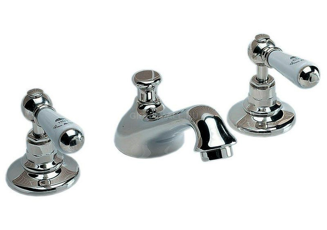 Смеситель для раковины Devon & Devon Dandy Смеситель для раковины на 3 отв., c д/к, (цв.хром, ручки цв.белый), Dandy ZZ