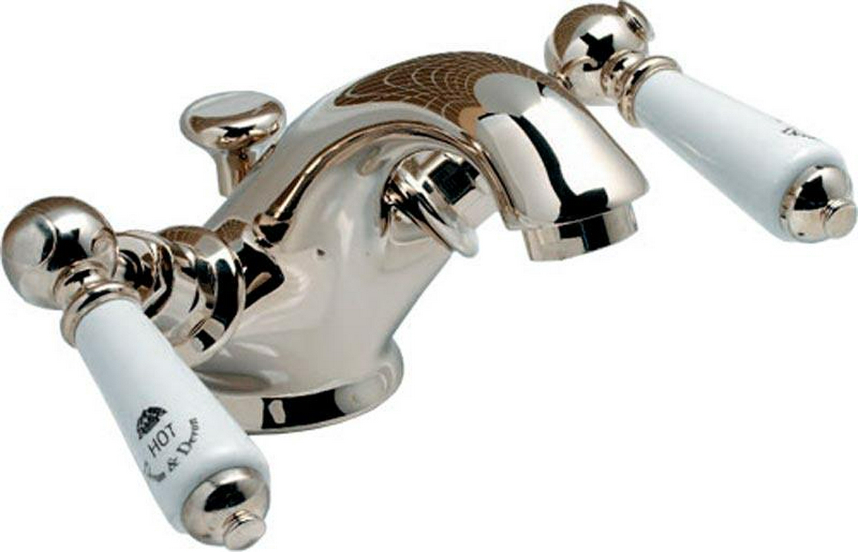 Смеситель для раковины Devon & Devon Dandy Смеситель для раковины на 1 отв., c д/к, (цв.латунь, ручки цв.белый), Dandy KL
