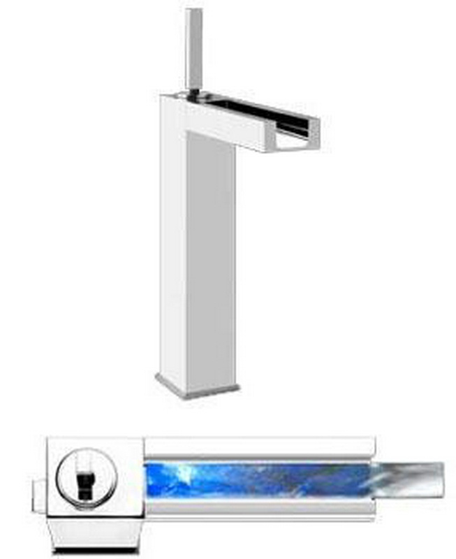 Смеситель для раковины, "Высокий" h 223мм, с д/к и редукционным эл.блоком, (цв. хром) XX Gessi Rettangolo Color 11985 031