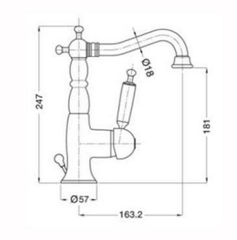 Смеситель для раковины Gaia Canterbury Смеситель для раковины, (рычаг сбоку), с д/к, (цв. хром, ручка цв. белый), Canterbury ZZ